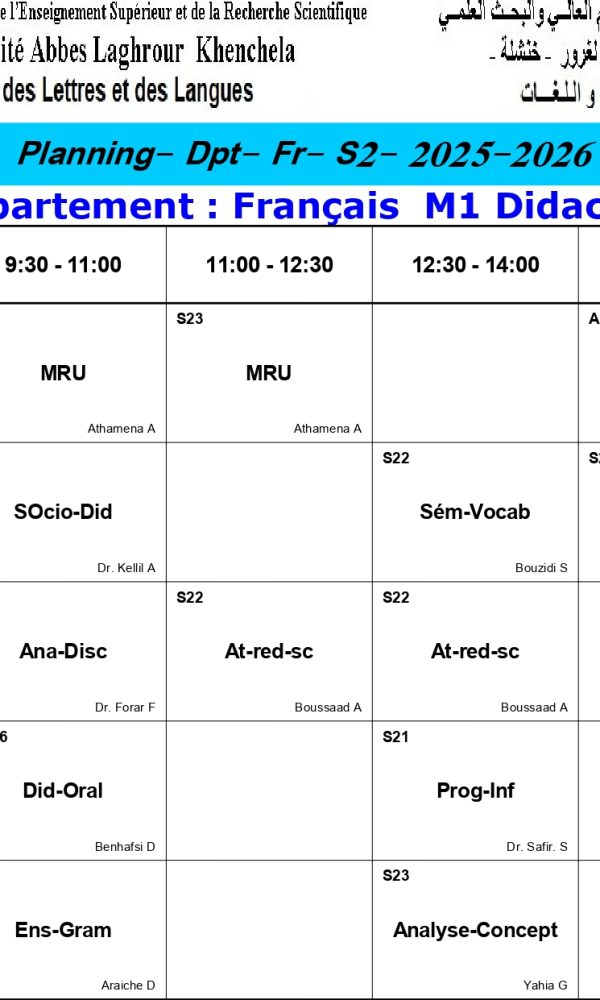 إعلام هــــــــام تُعلم ادارة قسم اللغة والأدب العربي طلبتها الأعزاء أن دروس السداسي الثاني ستنطلق الأسبوع المقبل يوم الأحد2026/01/25 ونحيطكم علما أن الغيابات ستسجل من اول حصة. وشكرا...اقرأ أكثر