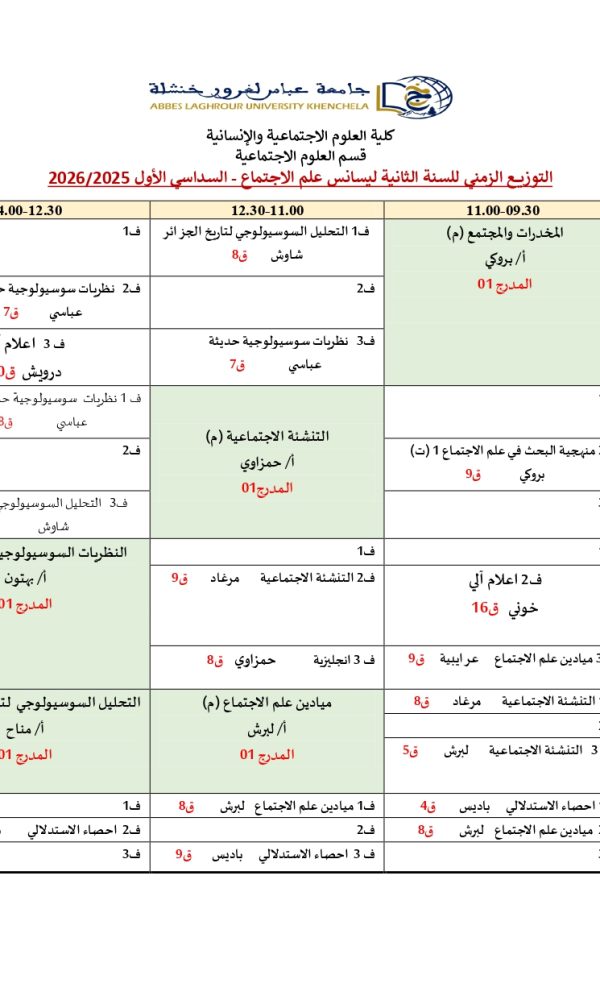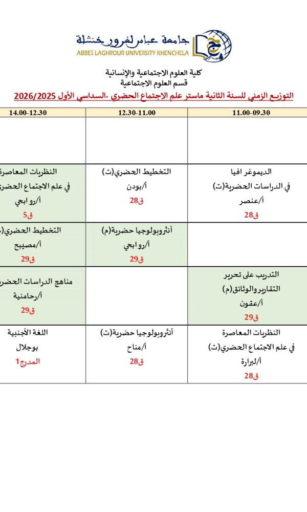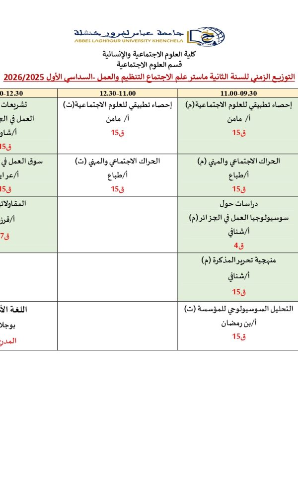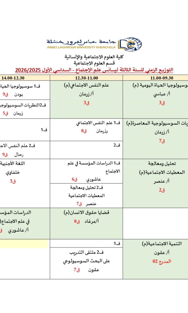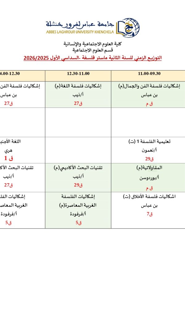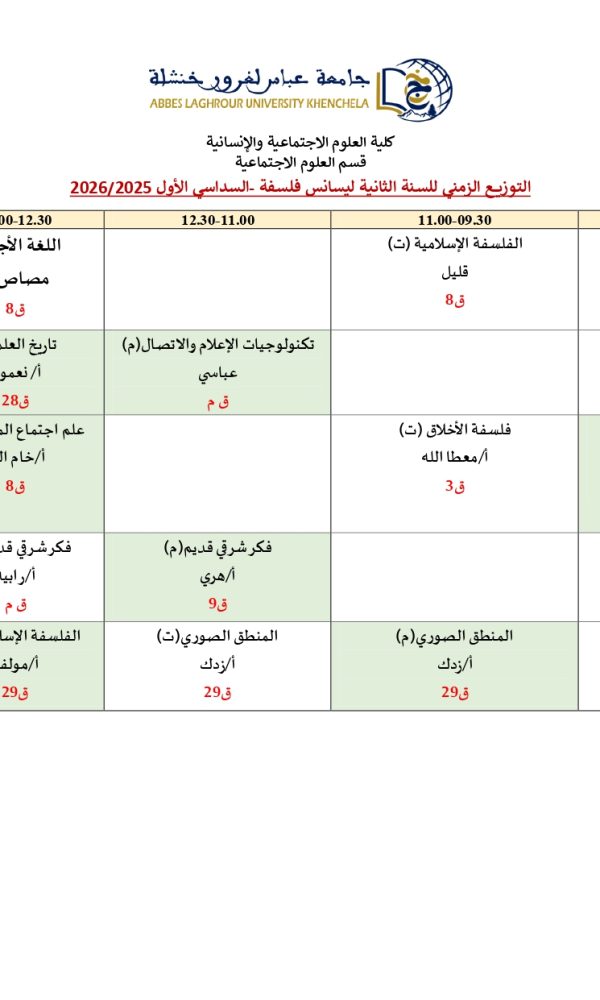 ليكن في علم طلبة السنة الثانية علوم طبية أن : إمتحان وحدة الجهاز القلبي التنفسي (cardio resperatoire) سيكون يوم الأحد 02 نوفمبر 2025 على الساعة 11:30 صباحا...اقرأ أكثر