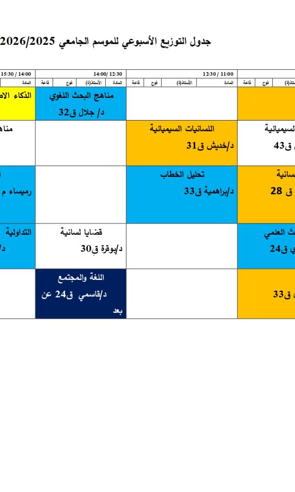 التوزيع الزمني M1 للسداسي 2- 2026/2025 لسانيات