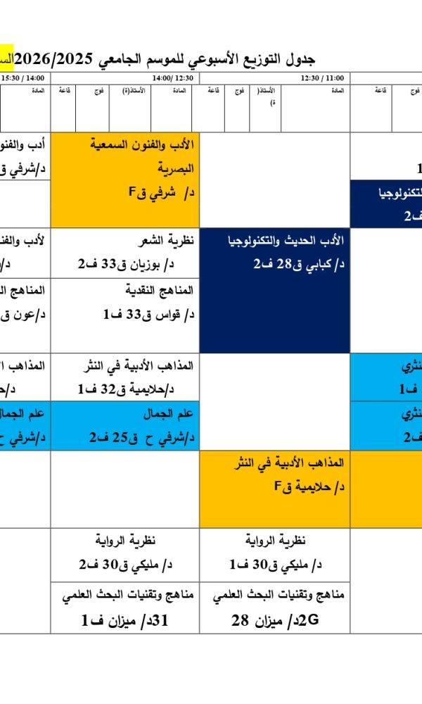 التوزيع الزمني M1 للسداسي 2- 2026/2025 ادب حديث