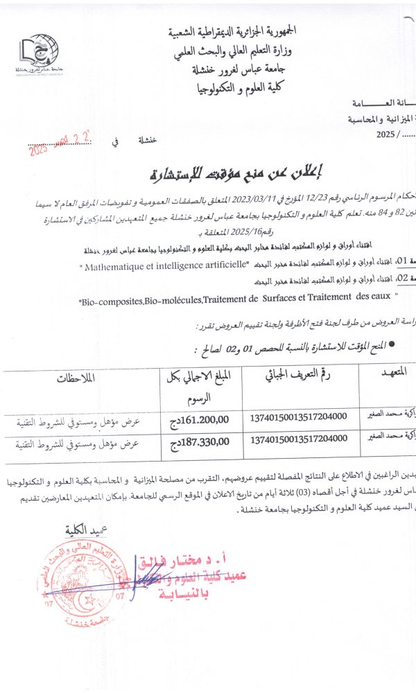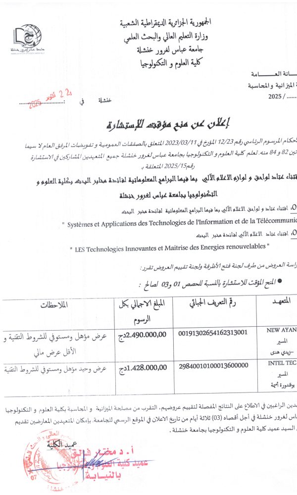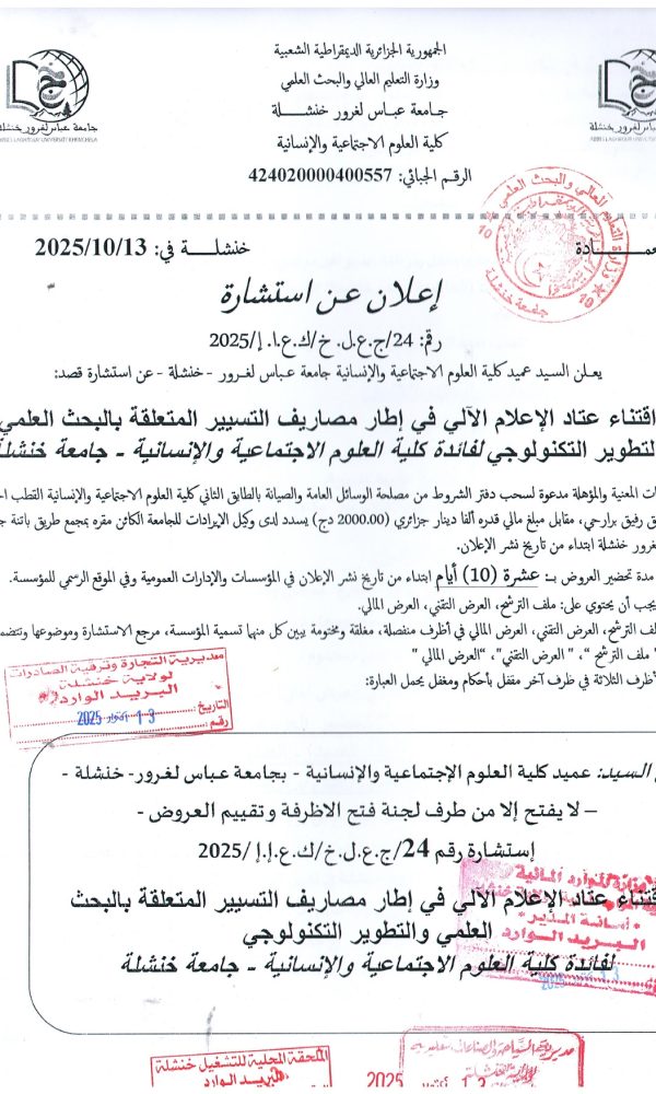 اعلان استشارة رقم:2025/26