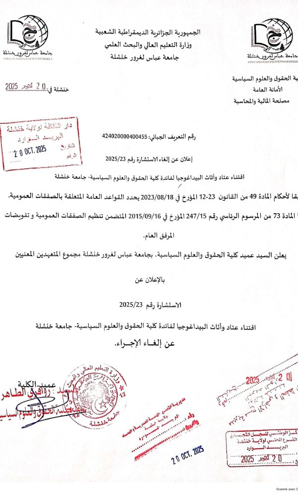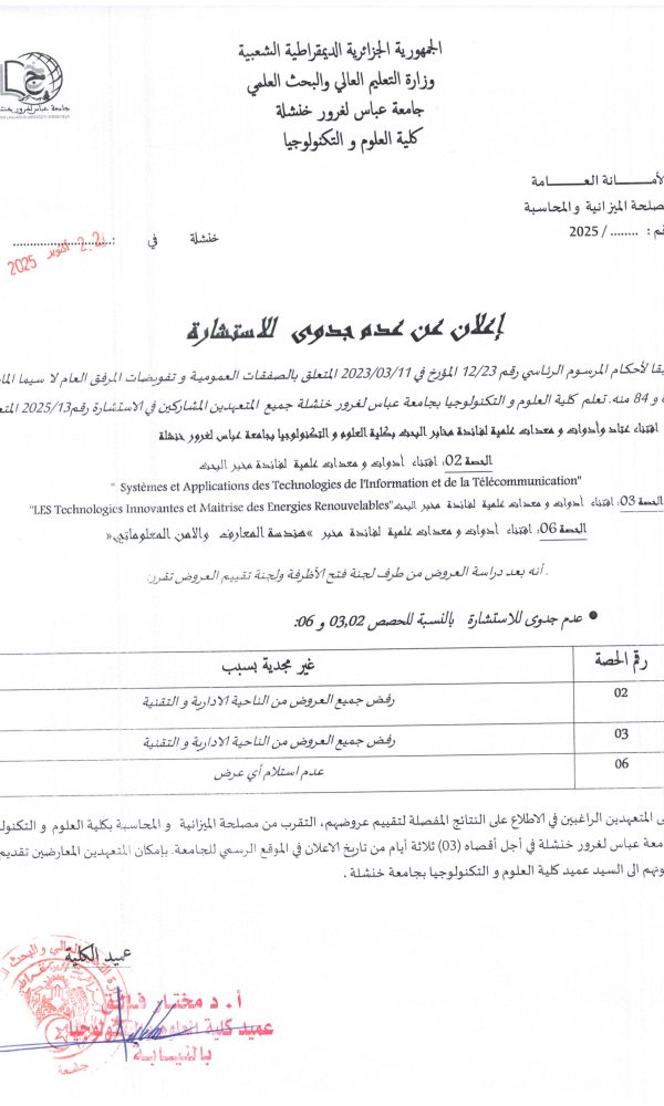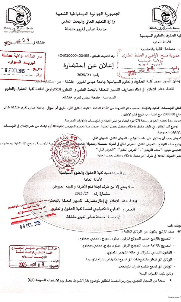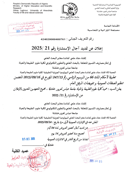 اعلان عن تمديد اجال استشارة رقم:2025/21