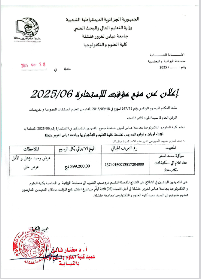 إستشارة رقم:2025 /14 لوازم التدريس لفائدة كلية الآداب واللغات التحميل...اقرأ أكثر