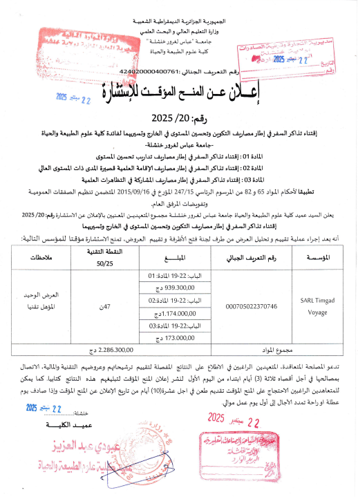 اعلان عن المنح المؤقت للاستشارة رقم:2025/20
