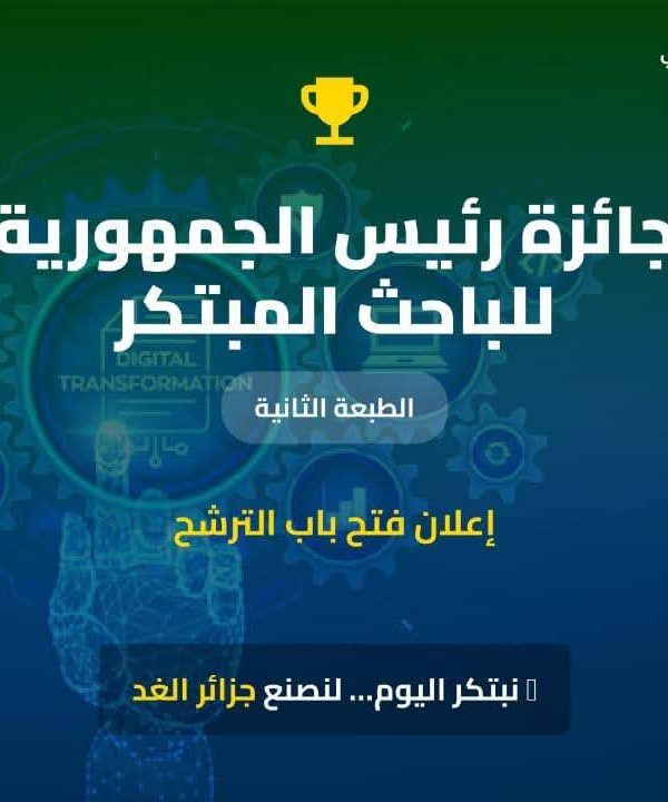 * جائزة رئيس الجمهورية للباحث المبتكر في طبعتها الثانية؛ تحت شعار نبتكر اليوم … لنصنع جزائر الغد #مواعيد_هامة افتتاح المنصة الرقمية للتسجيل 16 نوفمبر 2025 آخر أجل لتقديم الترشحات 16 جانفي 2026 الإعلان عن النتائج ومنح الجوائز 16 أفريل 2026...اقرأ أكثر