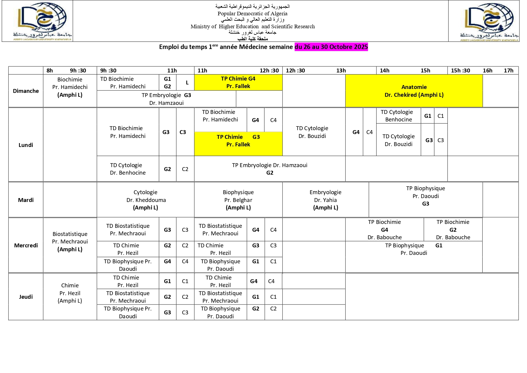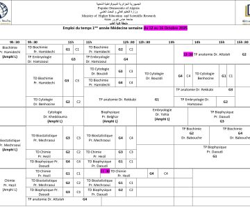• سابق2nd year medicine timetable from octobre 19 to 23