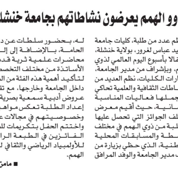 The 71st Anniversary of the Outbreakof the Glorious Liberation Revolution On the occasion of the 71st anniversary of the outbreak of the glorious Liberation Revolution, the November 1st, 1954 Revolution, the Creative Pen Club at the Faculty of Arts and Languages, under the supervision of the Dean and through the Activities Department, organized a cultural event to commemorate this momentous occasion. Students presented their creative works in poetry, prose, fiction, drawing, and design. The event also included a tribute to the faculty members who participated, in an atmosphere filled with pride in the nation’s history and a spirit of loyalty and gratitude....اقرأ أكثر