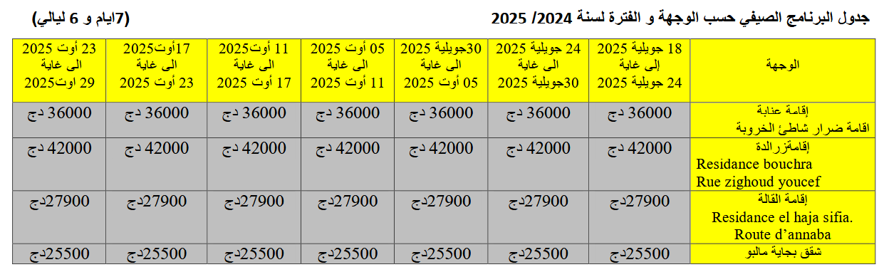 في إطار حرص الجامعة على توفير أجواء الراحة والاستجمام لمستخدميها، وحرصًا منها على تنويع وجهات الإصطياف بما يتماشى مع رغبات الأسرة الجامعية، يشرفنا أن نعلن عن تنظيم برنامج الإصطياف خارج الوطن لسنة 2024-2025 نحو دولة تونس الشقيقة، المعروفة بجمالها الطبيعي، شواطئها الساحرة، ومعالمها الثقافية العريقة. يمتد هذا البرنامج لفائدة مستخدمي الجامعة وأفراد عائلاتهم خلال العطلة الصيفية، ويشمل الإقامة في فنادق مختارة بعناية من فئة ثلاث وأربع نجوم، موزعة على أهم المناطق السياحية في تونس على غرار: سوسة،المنستير.