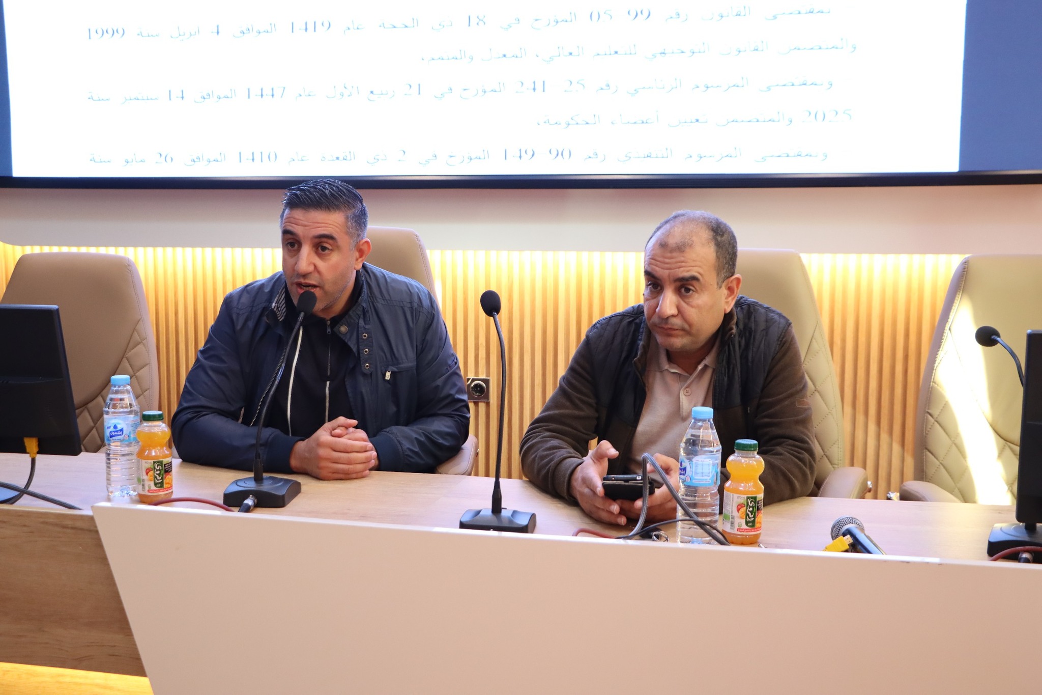 On October 29, 2025, the Vice-Rector for Academic Affairs, Professor Abdrahim Siam, oversaw a meeting dedicated to reviewing Resolutions 1164 and 1165. The meeting was attended by administrative and teaching staff from the Faculty of Economic and Commercial Sciences and Management Sciences, and the Faculty of Social and Human Sciences.