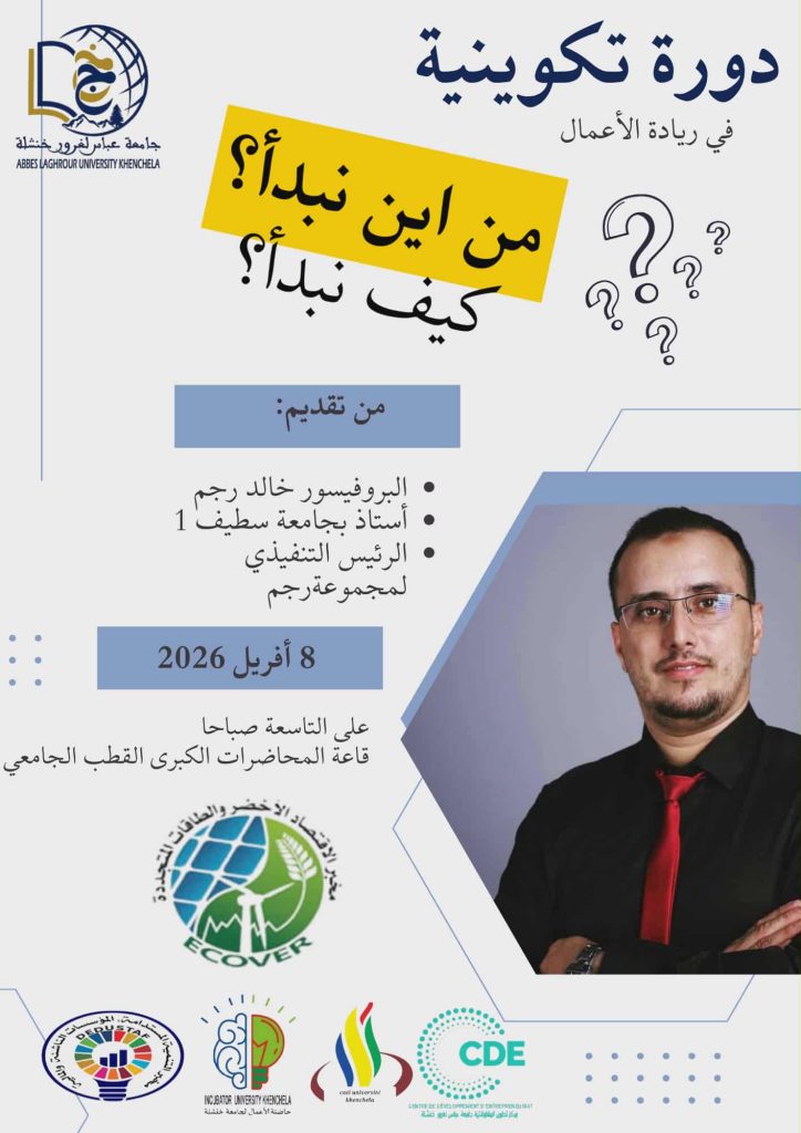 is pleased to announce to students enrolled under Ministerial Decree 1275 a training session led by Professor Khaled Rajm of the University of Setif 1