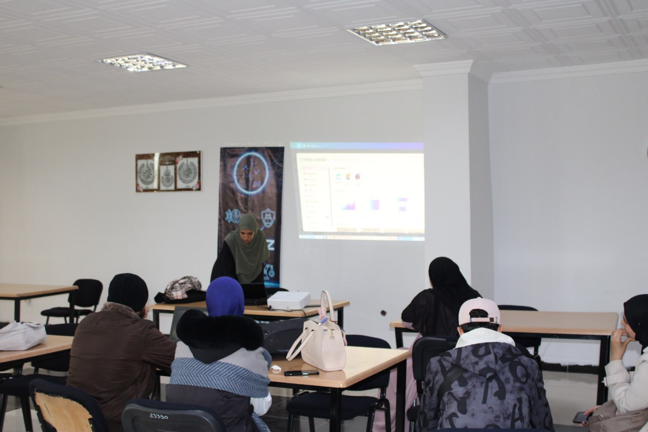 In the course organized by the Scientific Club for “Scientific Debates in English,” the Canva design application was introduced to beginners, including its components and resources, while also identifying the features of both the free and paid versions. It was a purely practical course in which students tried to include everything they knew about Canva, where creative ideas are transformed into reality.