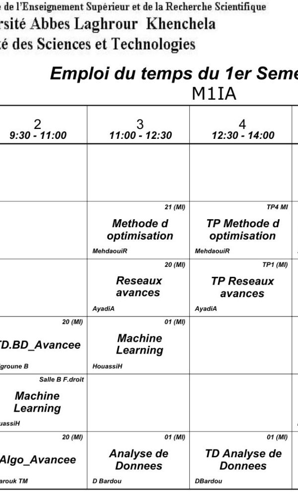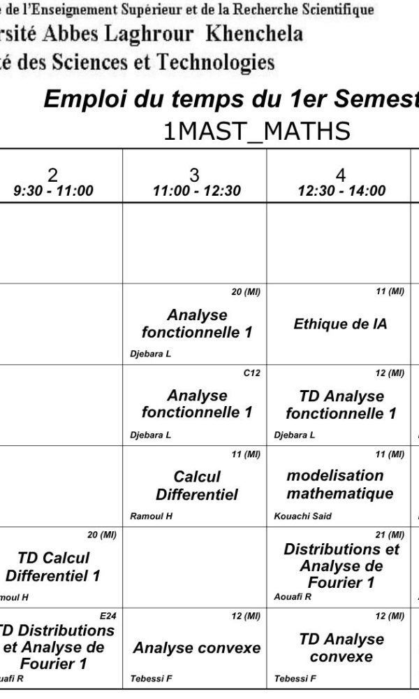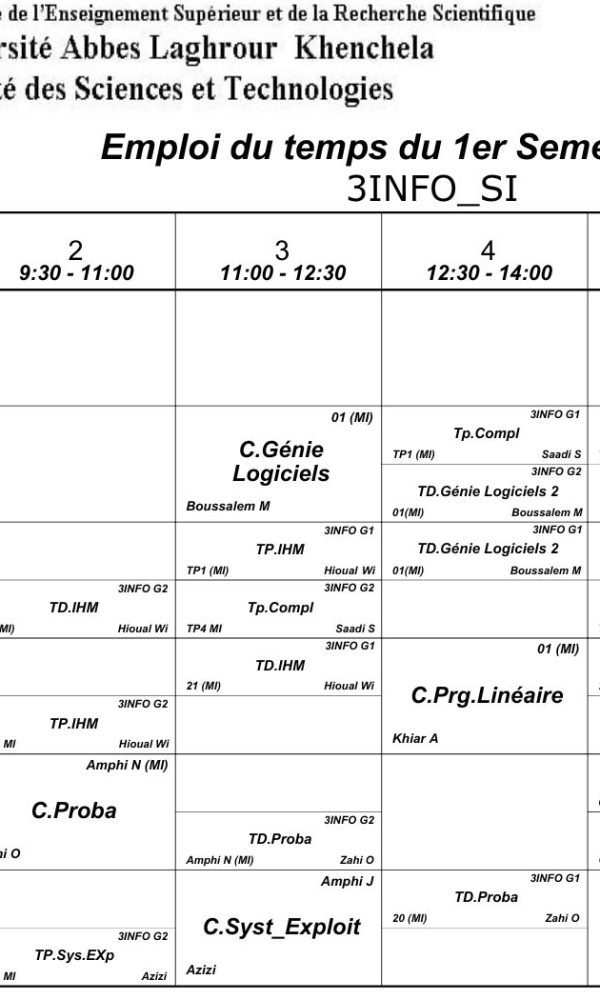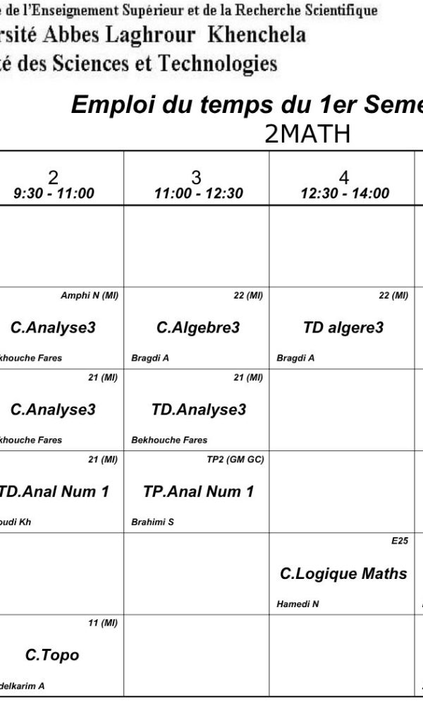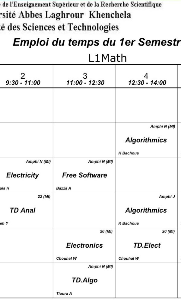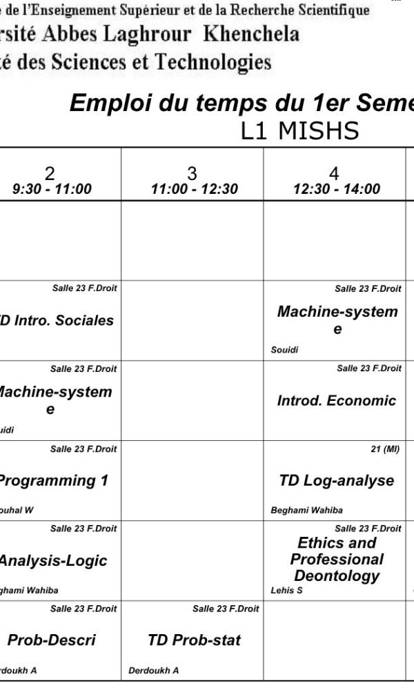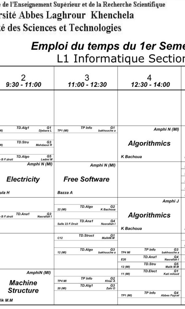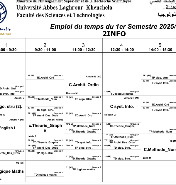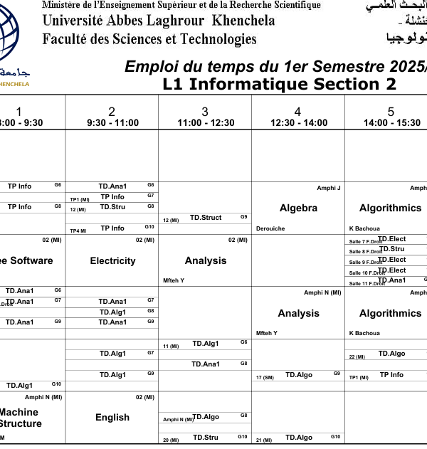 Timetable for First-Year Bachelor’s – Group Bكلية العلوم الاقتصادية, التجارية و علوم التسيير2025-10-08