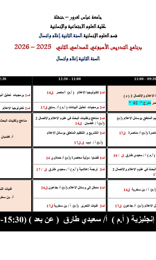 Report of the local committee meeting on promoting visibility, ranking, and digitizationDate: January 13, 2026 Within the framework of periodic meetings dedicated to monitoring digitization files and enhancing the university’s global ranking, the following agenda points were addressed and discussed: Google Scholar Ranking: Receiving updated lists from the various faculties and forwarding them to Ms. “Bediaf Leila” to complete the annual report for 2025. International Rankings: Analysis and discussion of data related to the global “QS” university rankings. Sectoral Statistics: Presentation of detailed digital data for each faculty (number of students, faculty members, and administrative staff). Human Resources Digitization: Monitoring the process of linking employee data to their dedicated digital platform, and evaluating the pace of electronic issuance of salary certificates. E-Learning (Moodle): Providing statistical presentation on the activity and usage of the “Moodle” platform. Activation of the Absence Platform: Completion of remaining data entry for the faculties. Preparation of student and faculty lists (in Arabic and French) and allocation of groups and classrooms to ensure the platform’s effective launch. Deliberation Platform: Emphasis on the necessity of including exam grades within the digital deliberation minutes platform. Digital Repository (Dspace): Mandatory uploading of exams along with their model corrections on the platform to enhance digital academic content....اقرأ أكثر