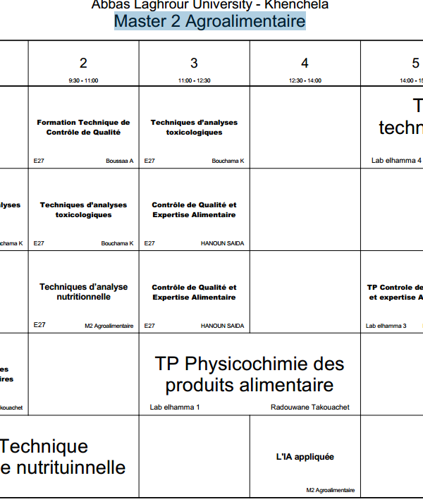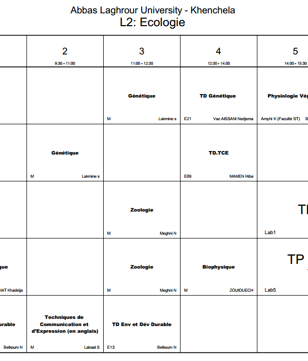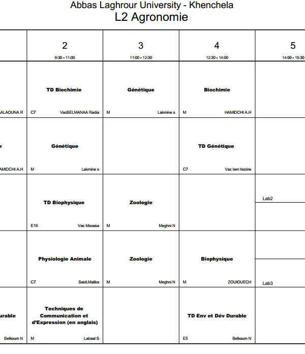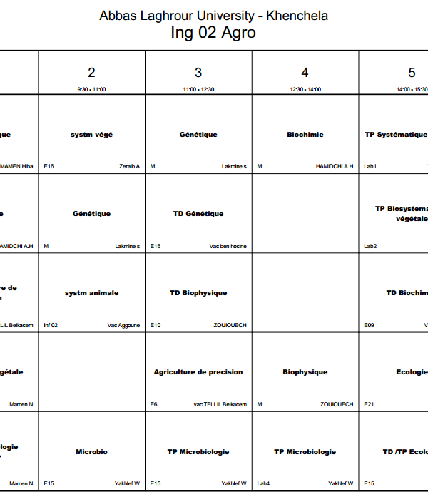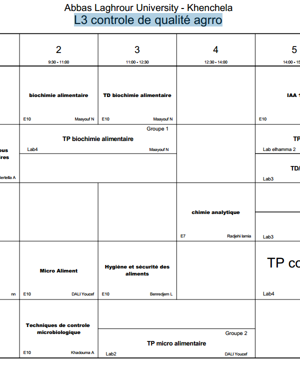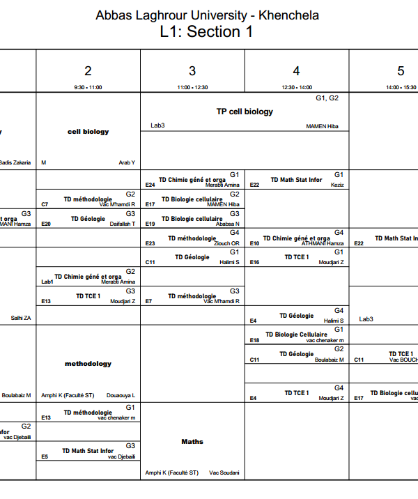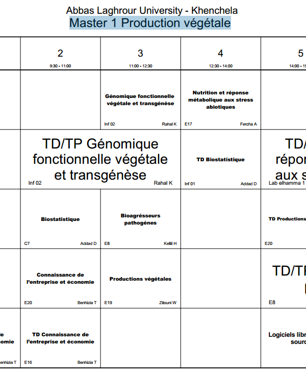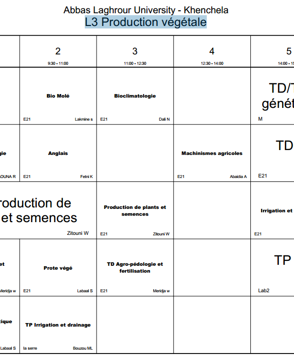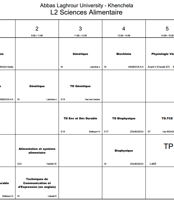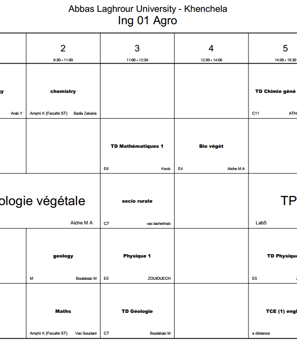 All students are requested to regularly access the timetable platform to monitor schedule updates and ensure proper academic organization. A new online platform on the university website is dedicated to students. It allows them to: View class schedules. View classrooms and professor names. Follow up on any changes or updates to the program in real time. Platform link: [ link here] With best wishes for success and good luck to all....اقرأ أكثر