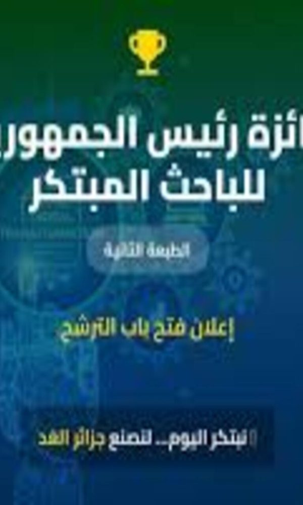 جائزة رئيس الجمهورية للباحث المبتكر في طبعتها الثانية؛ تحت شعار نبتكر اليوم … لنصنع جزائر الغد مواعيد_هامة افتتاح المنصة الرقمية للتسجيل 16 نوفمبر 2025 آخر أجل لتقديم الترشحات 16 جانفي 2026 الإعلان عن النتائج ومنح الجوائز 16 أفريل 2026 ...اقرأ أكثر