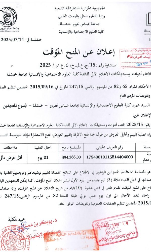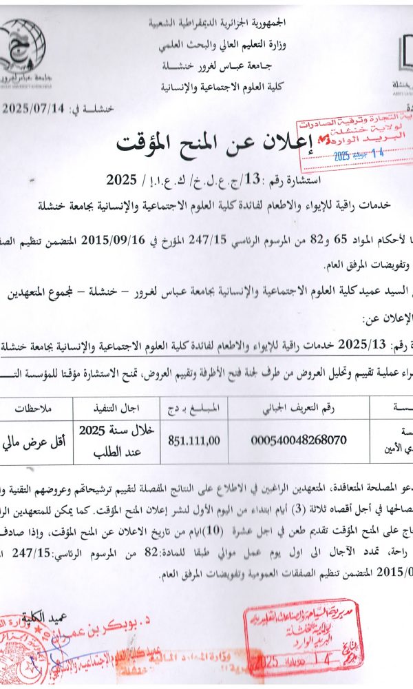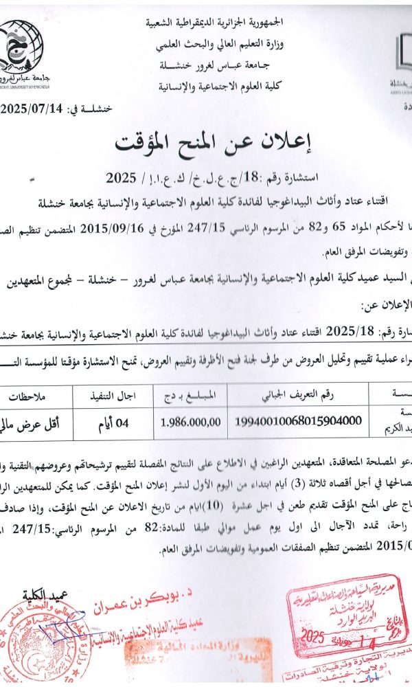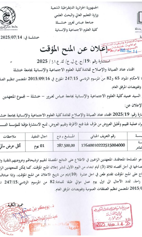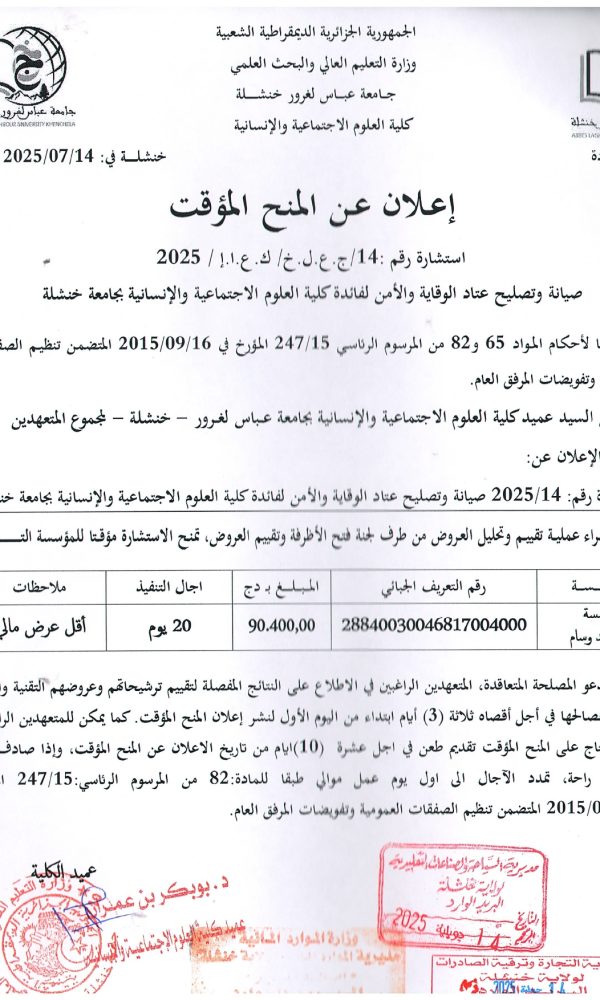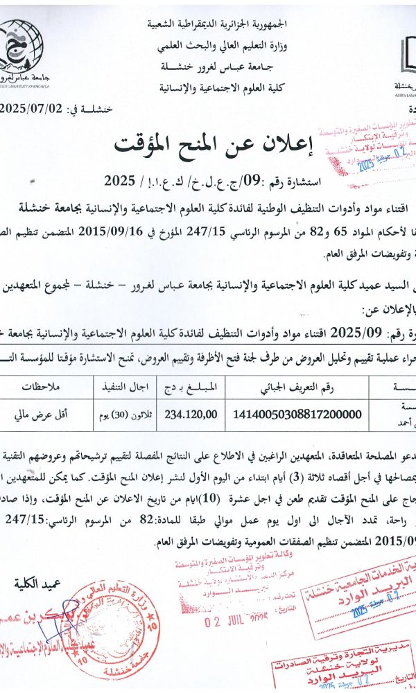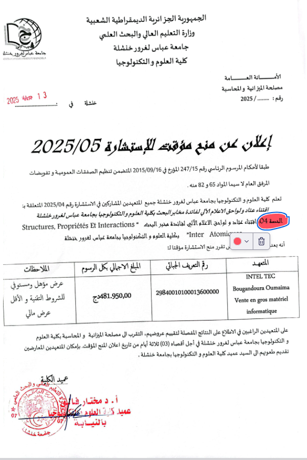 “Provisional Award of Tender No. 05 – Batch No. 04”...اقرأ أكثر