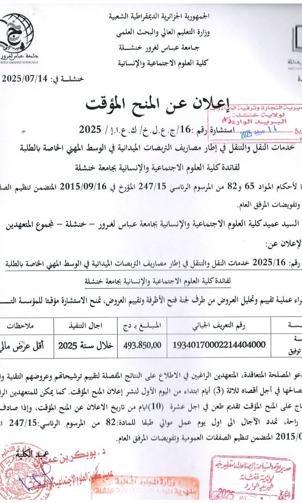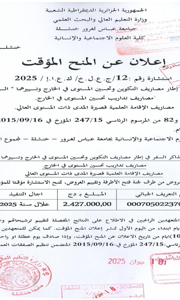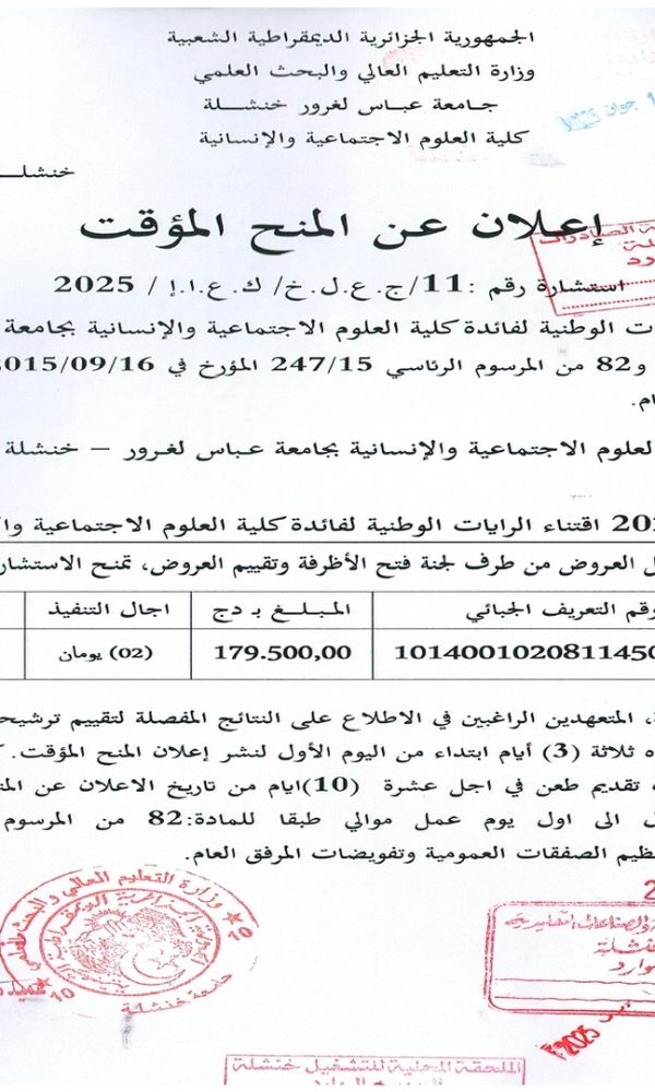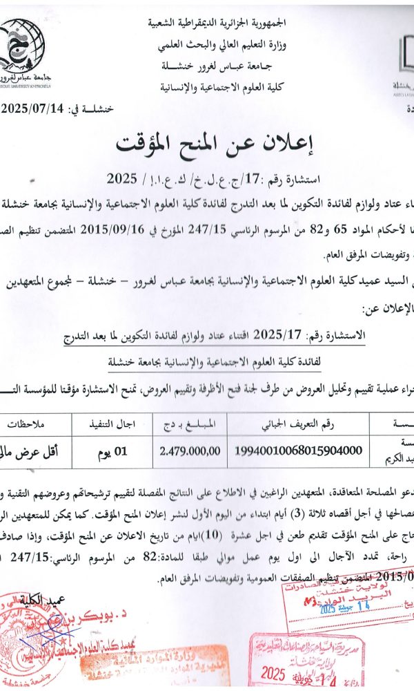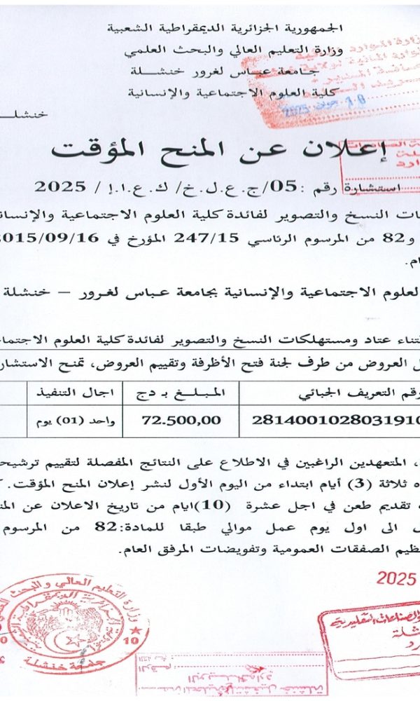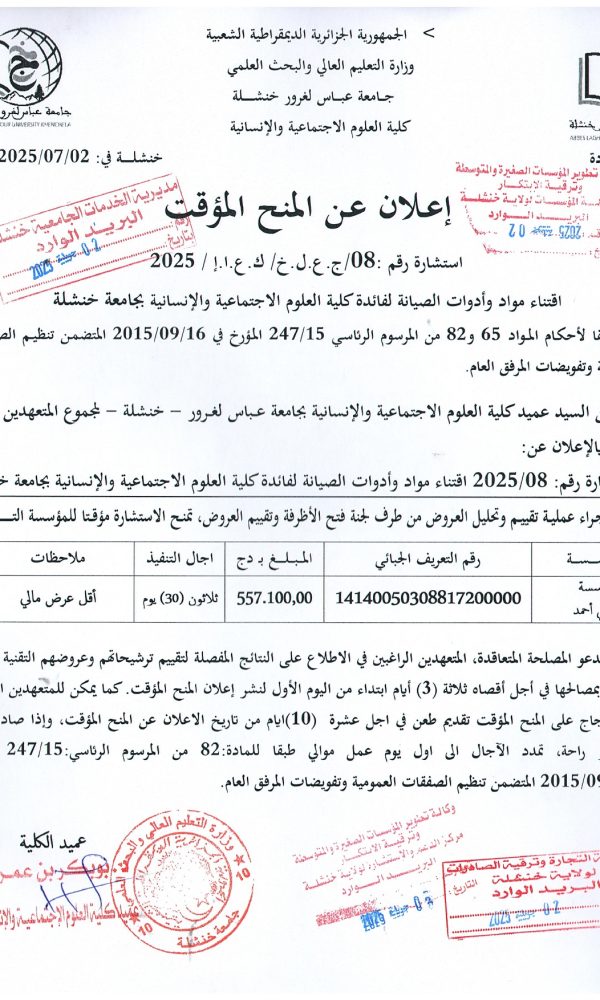 “Provisional Award of Tender No. 05 – Batch No. 04”...اقرأ أكثر