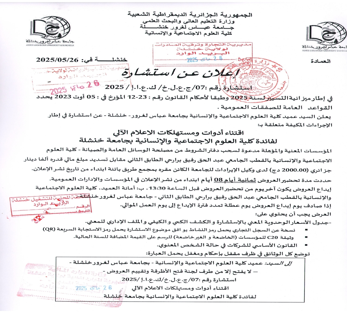 © جميع الحقوق محفوظة لجامعة خنشلة 2025.