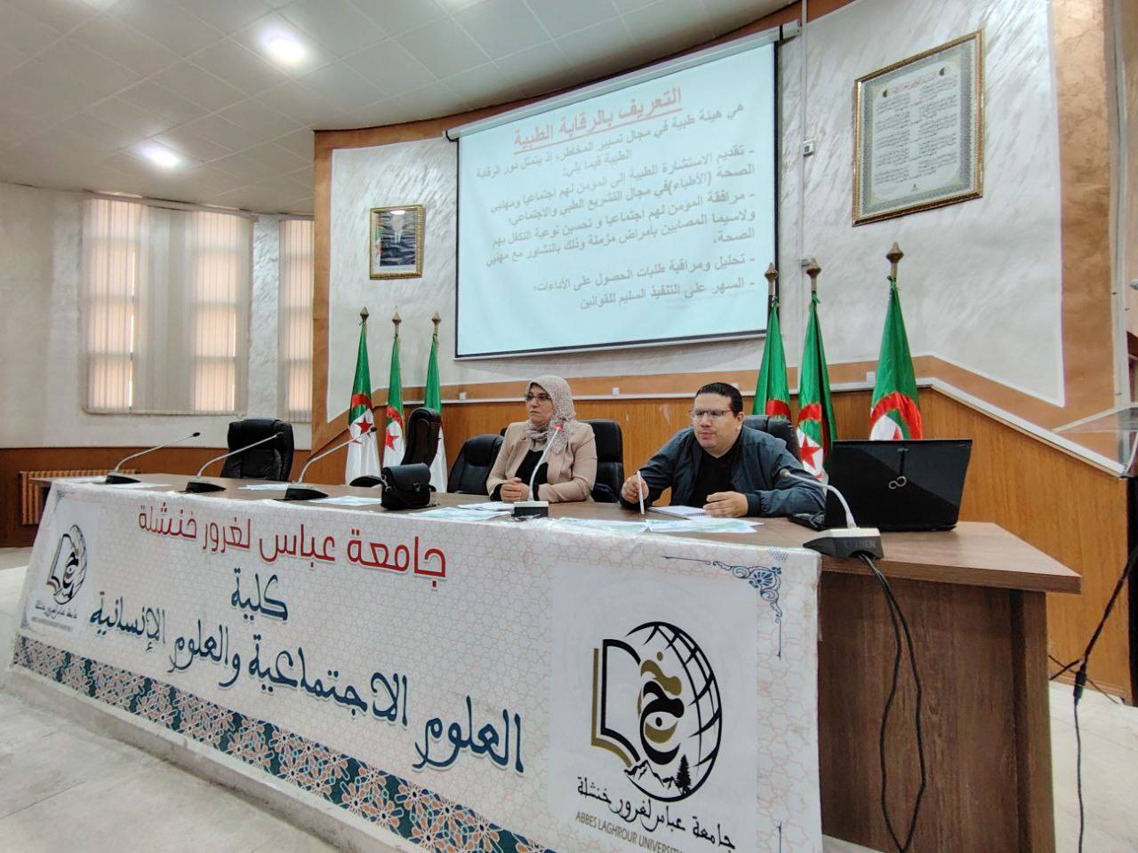 Over two consecutive days, Abbas Laghrour University of Khenchela, in coordination with the National Social Security Fund for Salaried Workers – Khenchela Branch, organized information and awareness days for university students. These sessions were led by the head of the Information, Communication, and Social Listening Unit at the branch.