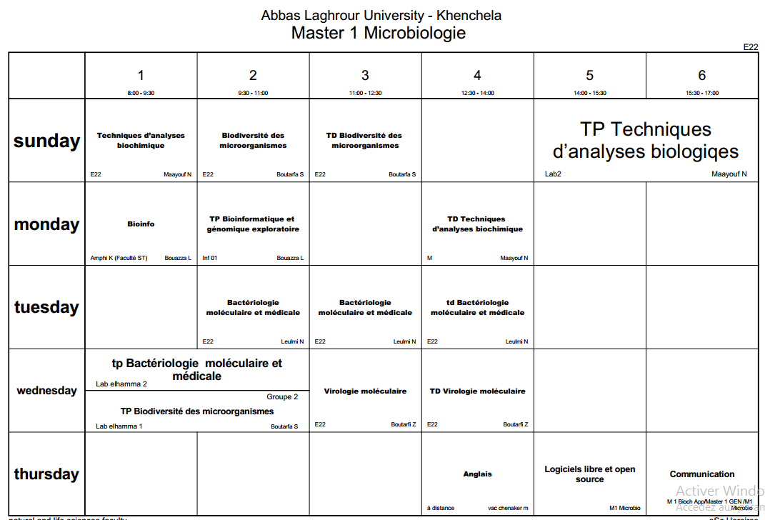 Timetable Department of Molecular and Cell Biology-M1
