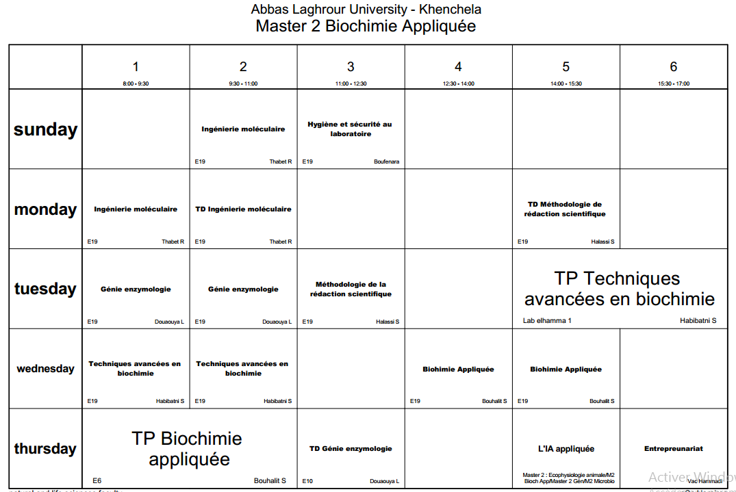 Timetable Department of Molecular and Cell Biology-M2