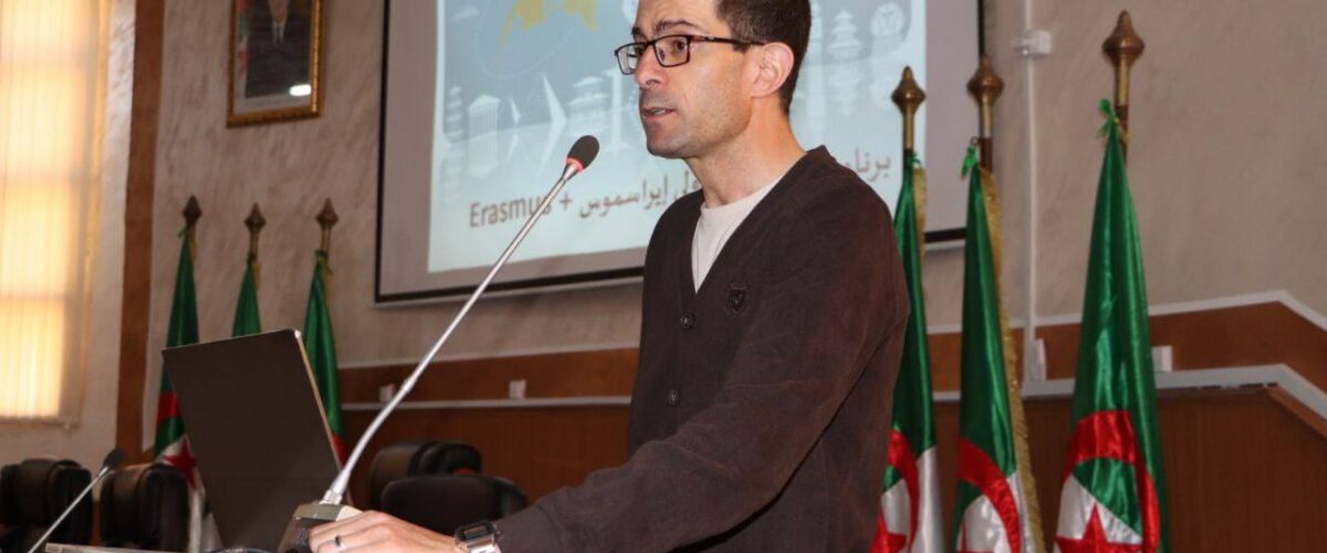 The third stop in the Erasmus+ open house series was held today, April 28, 2025, at the Faculty of Economics, Business and Management Sciences, under the supervision of the University President, Professor Abdelouahed Chala, and the Dean of the Faculty. This event was moderated by Dr. Ali Said, and attended by faculty members, including professors, administrators, and students. This initiative falls within the framework of the policy of promoting international cooperation and academic exchange, by providing explanations about the program, its objectives, and its target groups.