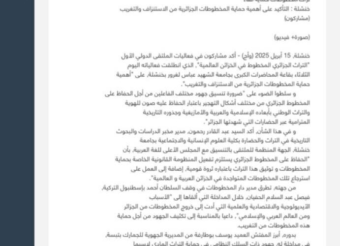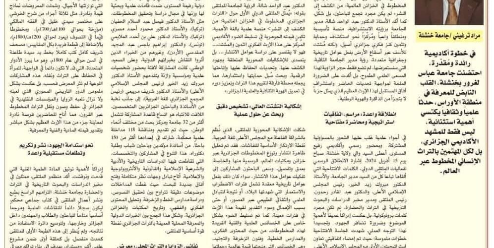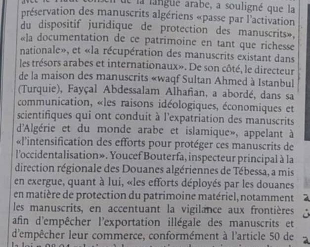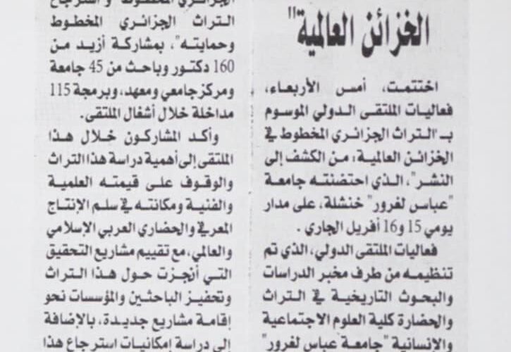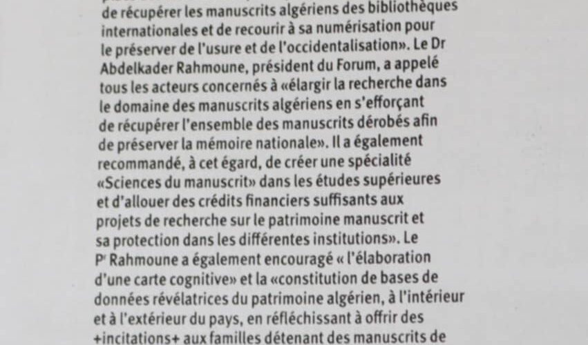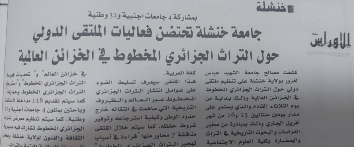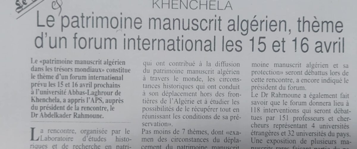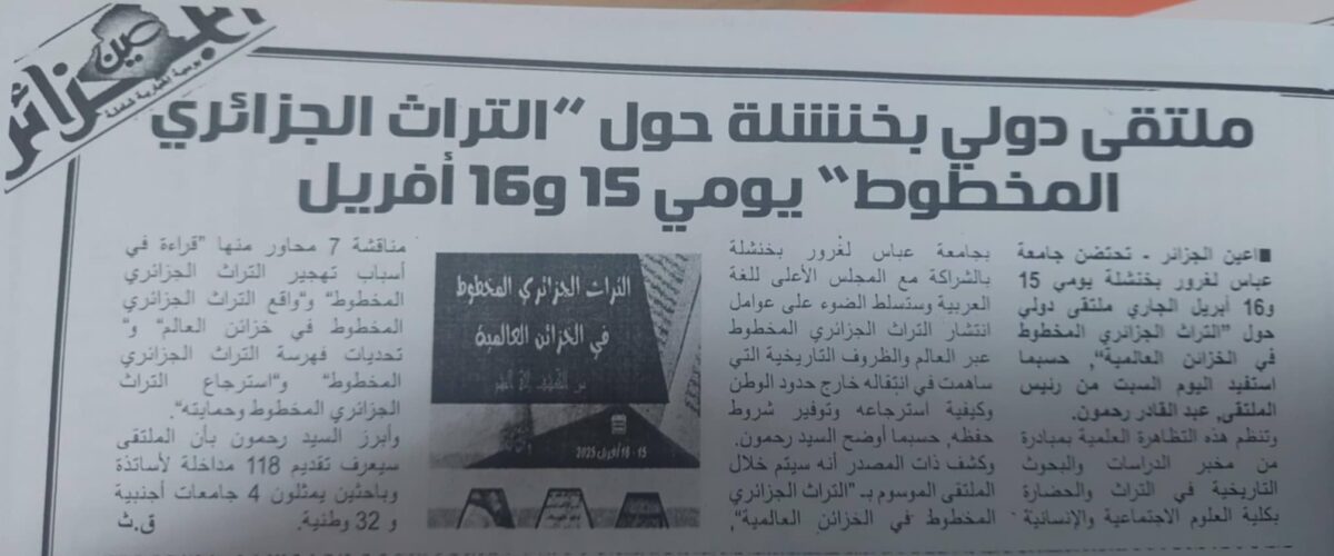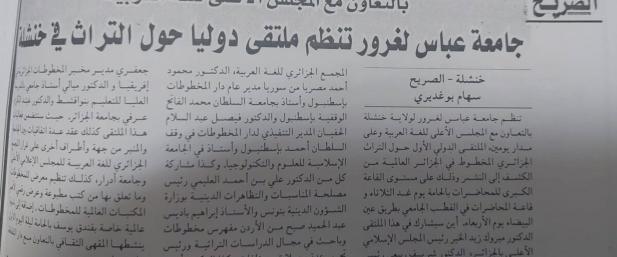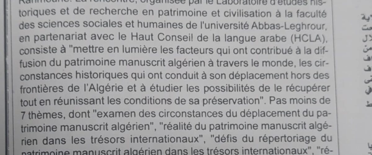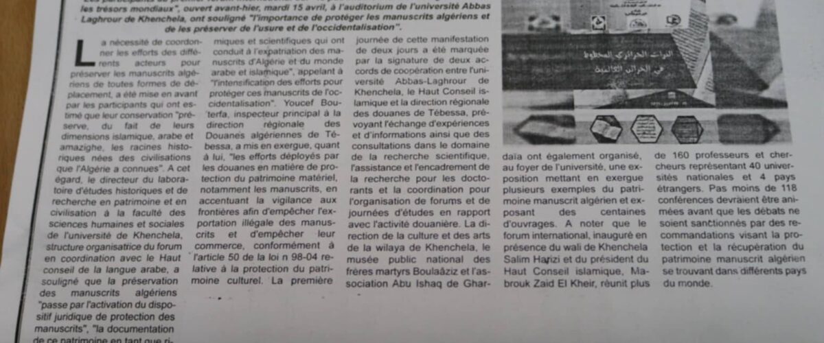 Press coverage of the university’s activities – the first international forum on Algerian manuscript heritage in international archives