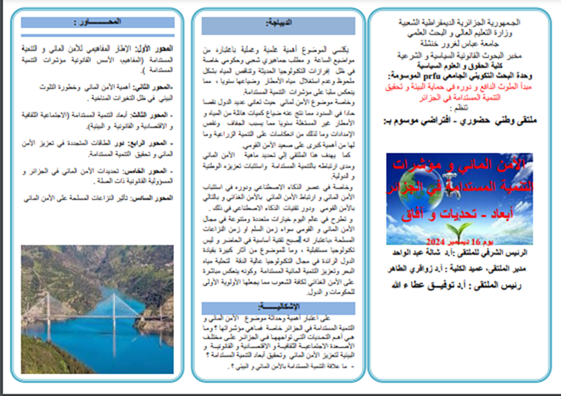 - International Forum on “Algeria and the Imperative of Transition to Green Economy” (2018): Attracted experts from 15 countries, representatives from ministries of environment, energy and industry, major companies (such as Sonelgaz), and civil society, resulting in the “Khenchela Declaration for Green Transition.”