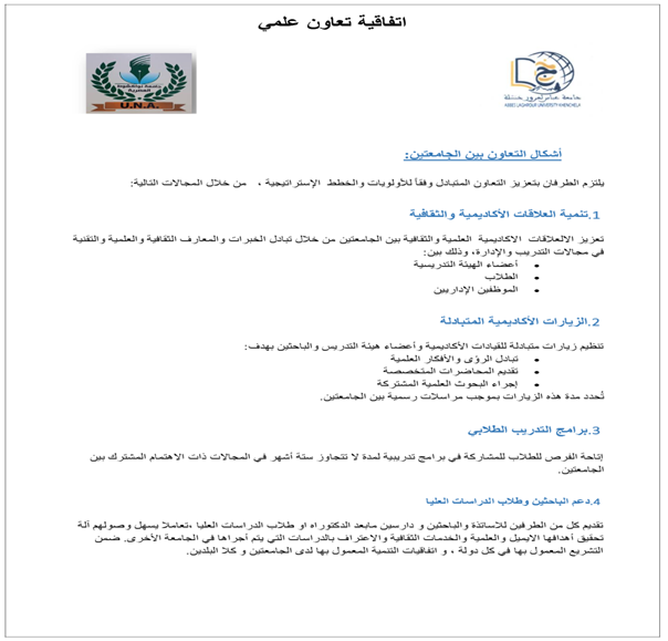 Cooperation Agreement: Abbes Laghrour University Nouakchott Al-Asriya University, Mauritania