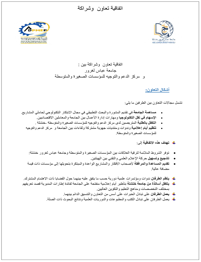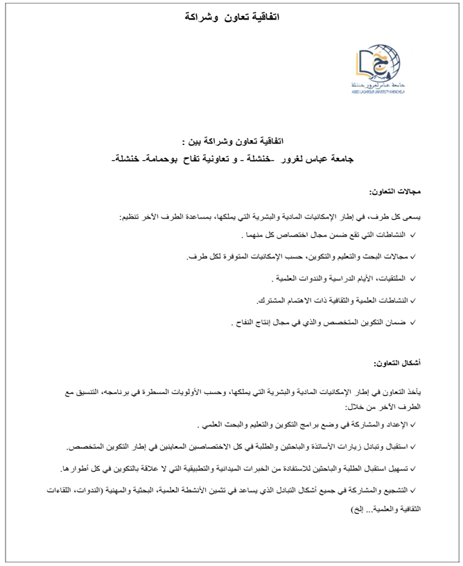 Cooperation and partnership agreement: Abbes Laghrour University – Wilaya Association for Environmental Protection and Sustainable Development – Khenchela