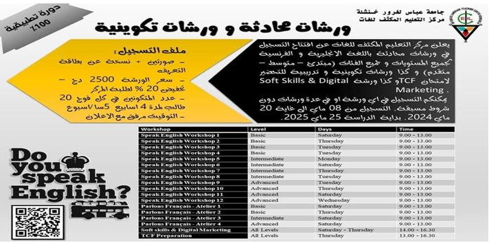 The university, through its various faculties and centers, organizes training courses and workshops for the benefit of the community, particularly through: