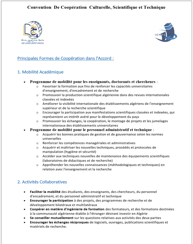 Khenchela University Cooperation Agreement — IEMFC Institute, France