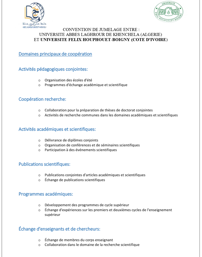 Twinning agreement between Khenchela University and Felix Houphouët-Boigny University (Ivory Coast)