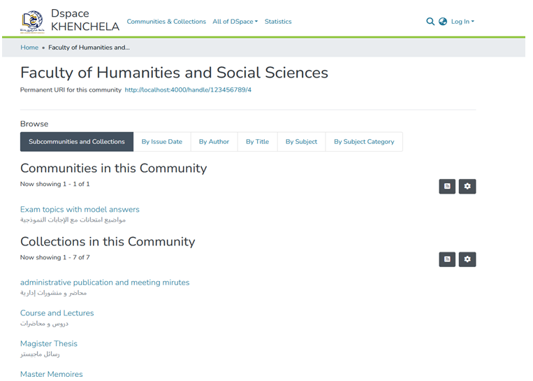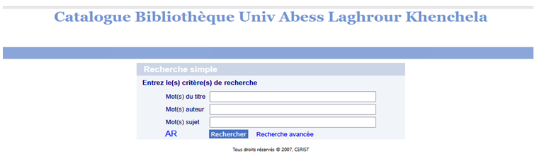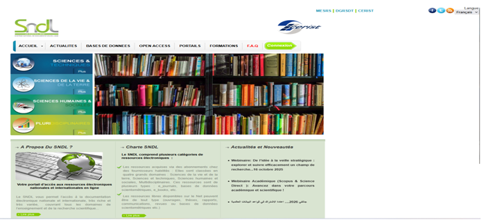 The universityalso relies on the digital repositoryDSpace (univ-abbeslaghrour@khenchela), whichis the world’sleading open-source platform for depositing and providingaccess to the scientific output of the university’sfacultymembers. It isused to publishvariousresearchworks, including lectures, theses, master’s dissertations, and conferenceproceedings, therebyensuringtheirpreservation and public accessibility in accordance with open access standards.