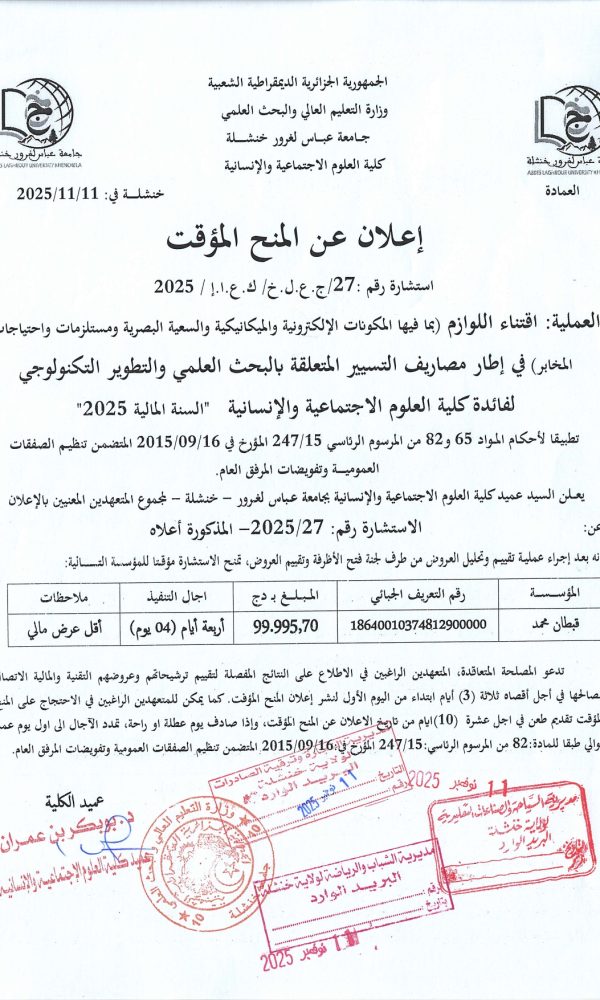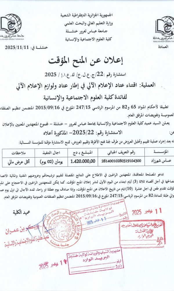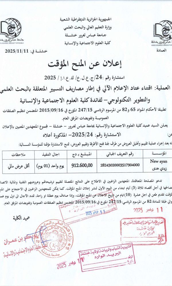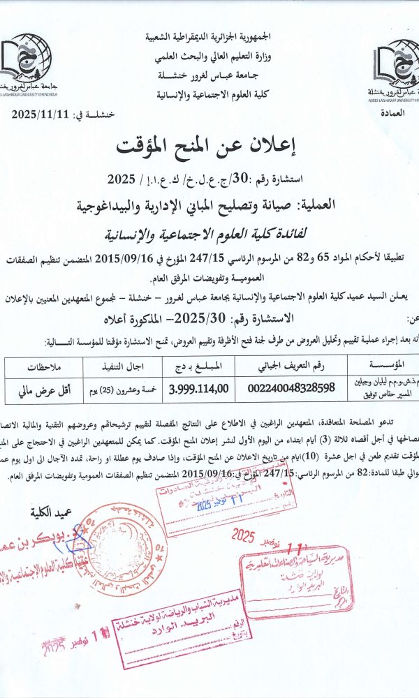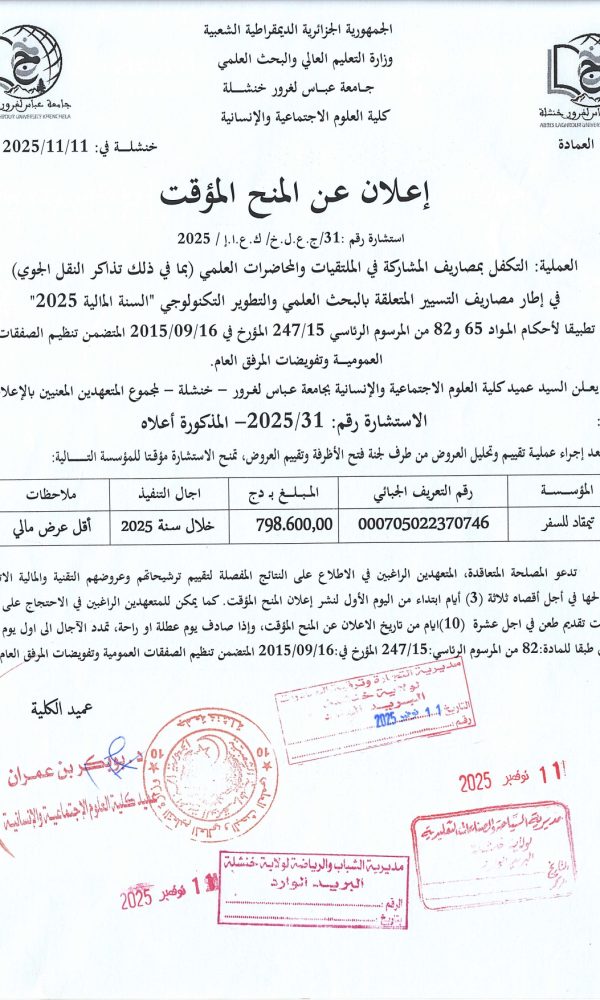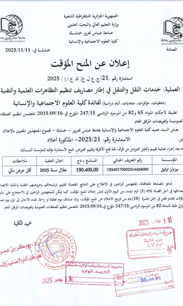 Abbas Laghrour University of Khenchela; ranks #7th nationally in its first participation