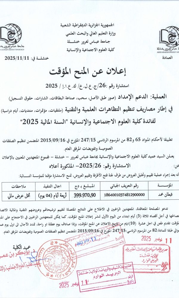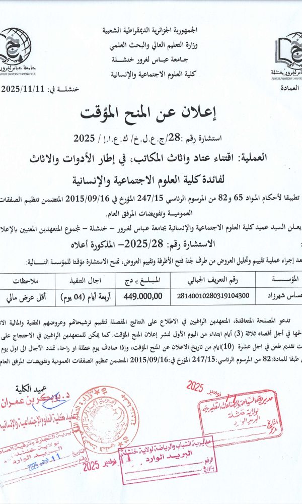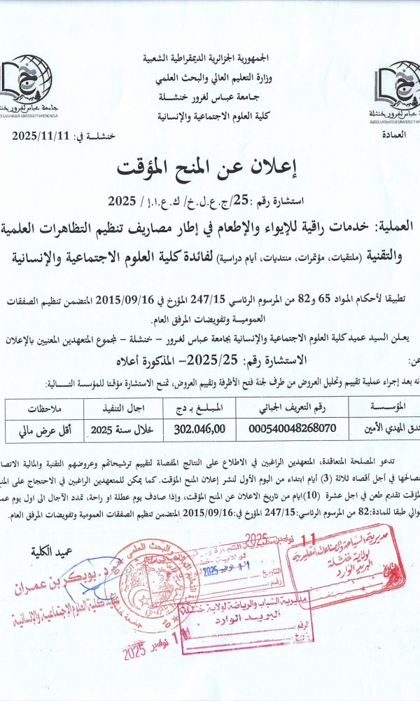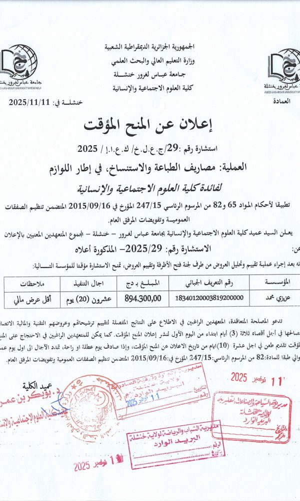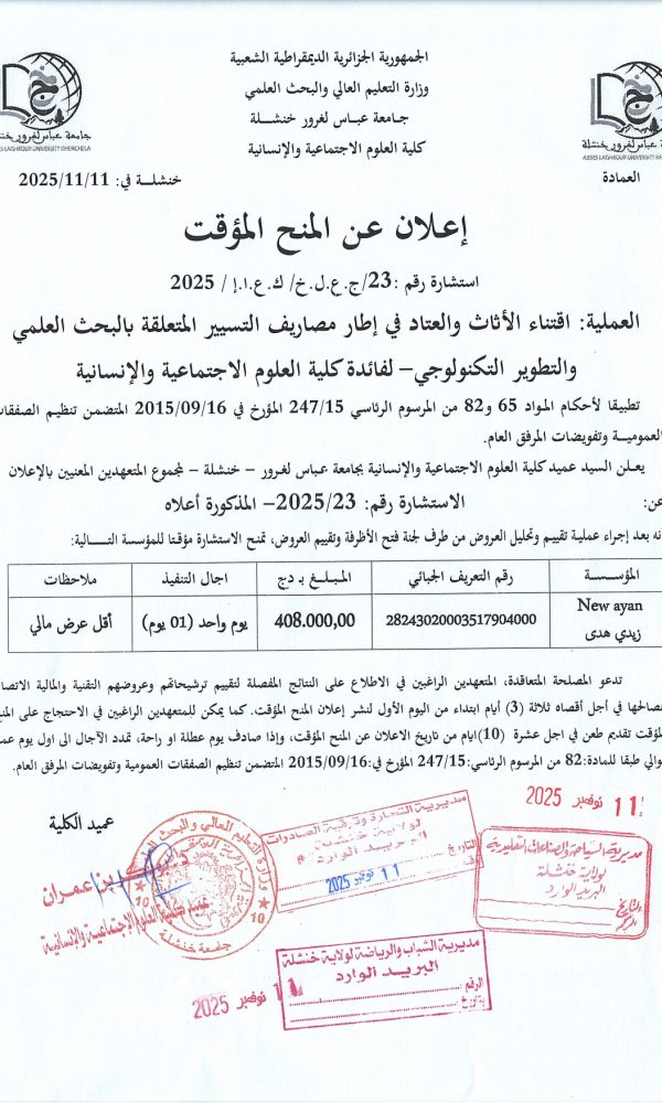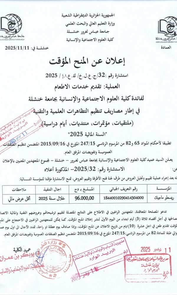 Abbas Laghrour University of Khenchela; ranks #7th nationally in its first participation