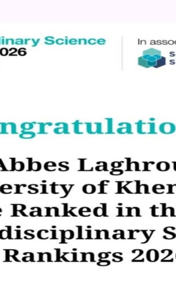 Abbas Laghrour University of Khenchela ranks 7th nationally in the Times Higher Education Interdisciplinary Sciences Rankings 2026. This ranking lists the best universities in interdisciplinary sciences from 94 countries. Congratulations to Abbas Laghrour University of Khenchela on this achievement! Link to the ranking: https://www.timeshighereducation.com/…/interdisciplinar… ... اقرأ أكثر