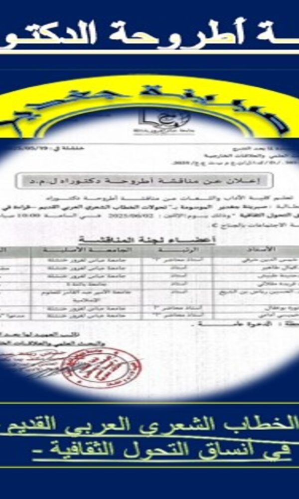 Department of Arabic Language and LiteratureAnnouncement The department administration informs the following students that they must report to the department administration tomorrow, Wednesday, June 18, 2025, at 2:00 PM, regarding a matter of concern to them. L2: Nadia Haji L3: Basma Hafyane L3: Asmaa Darwich L3: Balaidi Imane L1: Said Rayane L1: Fatima Zohra Tebib ... اقرأ أكثر