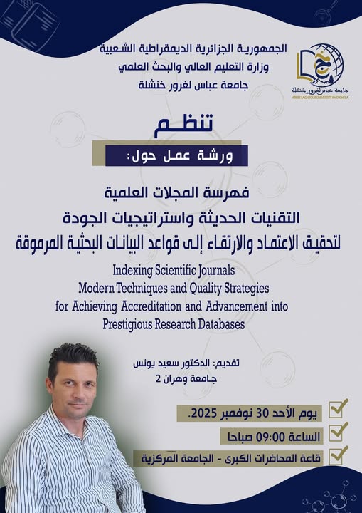 Under the supervision of the Dean of the Faculty, Dr. Ben Omrane Boubaker, and in order to encourage scientific publication in various international journals indexed in international databases, the Faculty of Social Sciences and Humanities is organizing the Best Research Professor Competition for 2025. Note: For those unable to access the application using the QR code, the link to the form is here. ... اقرأ أكثر