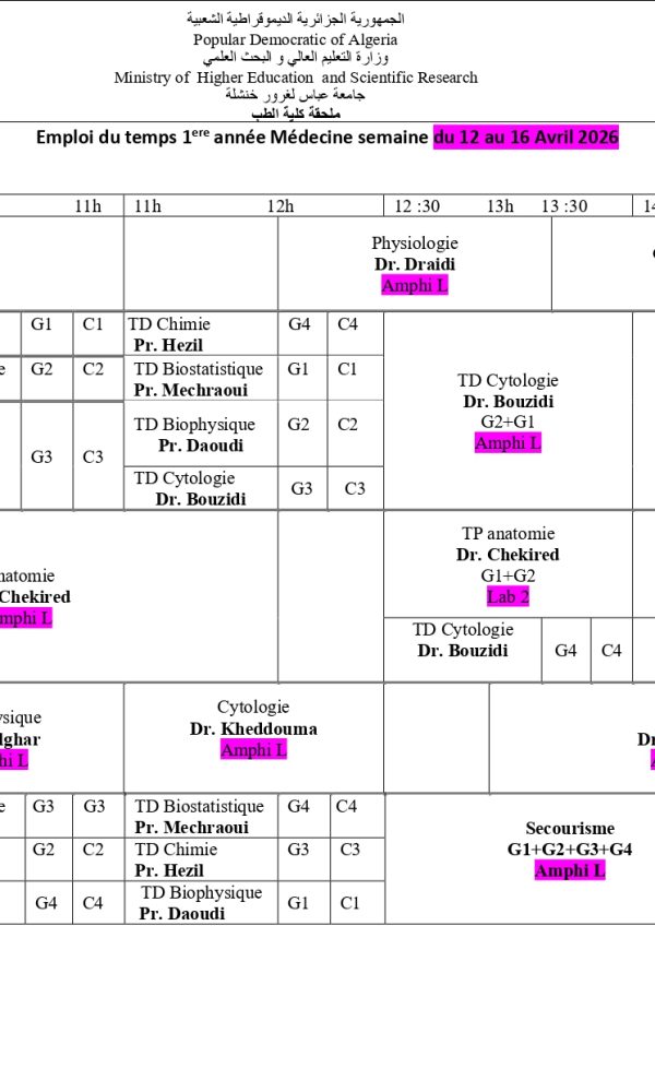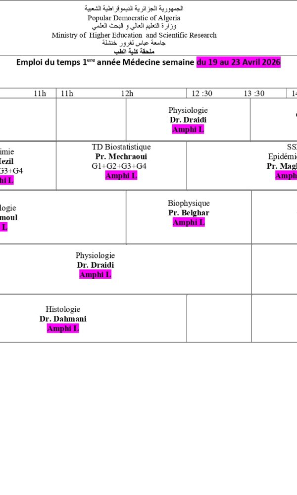 First-year medical timetable From April 12 to April 16, 2026