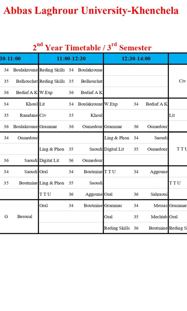Timetable Department English Language -L2