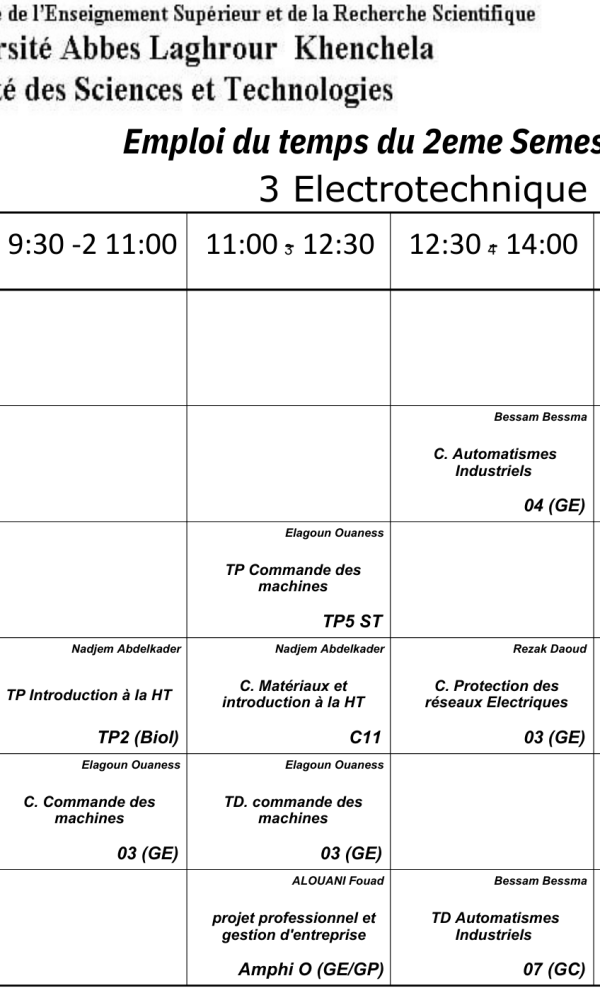 Timetable Department of Electrical Engineering -L3