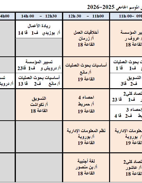 Weekly timetable for the second semester of the 2025-2026 academic year, second year, Management Sciencesكلية العلوم الاقتصادية, التجارية و علوم التسيير2025-12-18