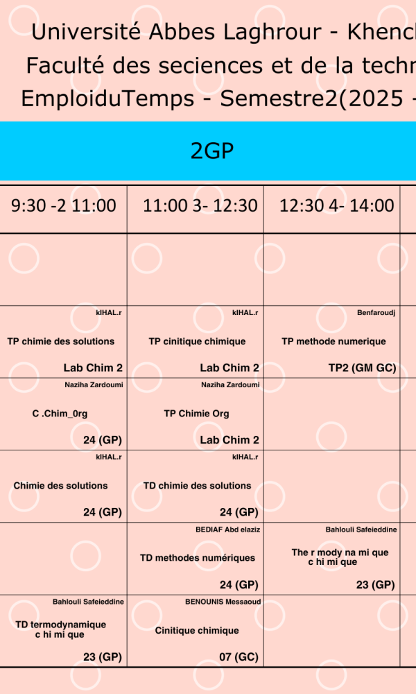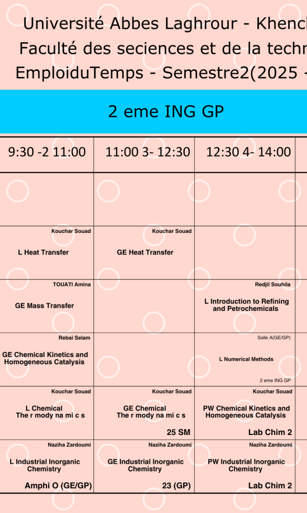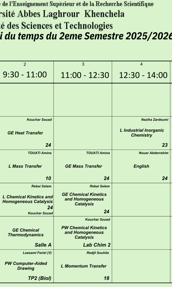 Timetable Department of Process Engineering -L2