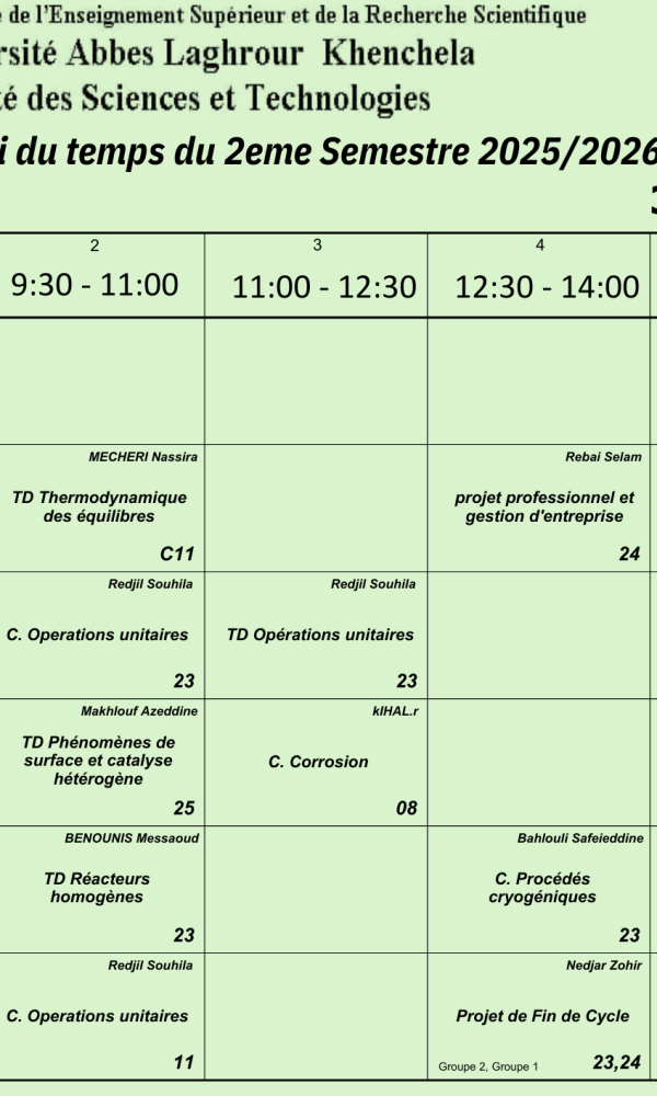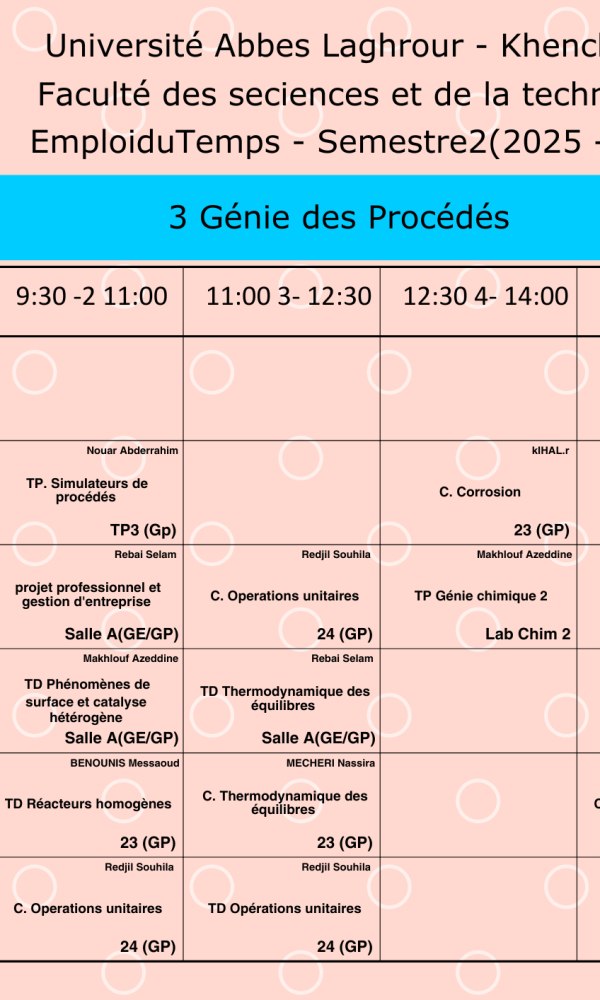 Timetable Department of Process Engineering -L3