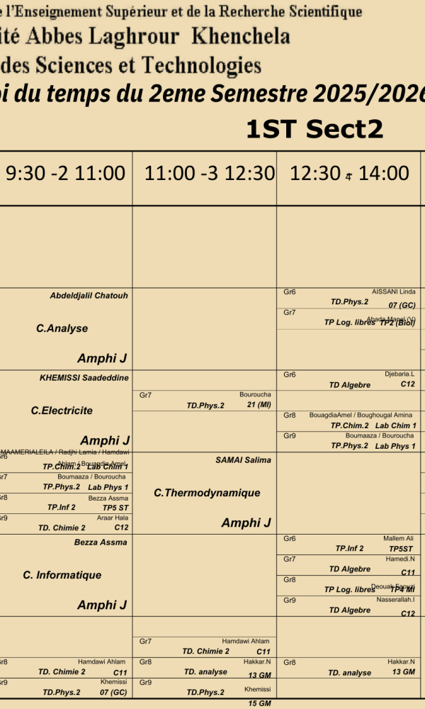 Timetable Department of Science and Technology -L1 date de modification 13-02-2026كلية العلوم والتكنولوجيا2026-02-07