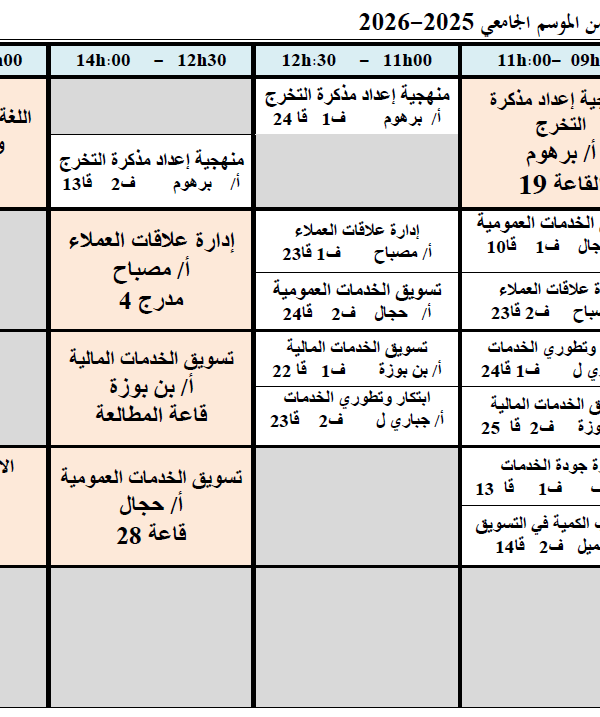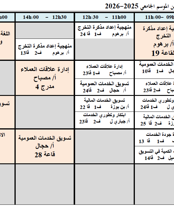 Weekly timetable for the second semester of the 2025-2026 academic year, first year Master’s in Services Marketingكلية العلوم الاقتصادية, التجارية و علوم التسيير2025-12-18