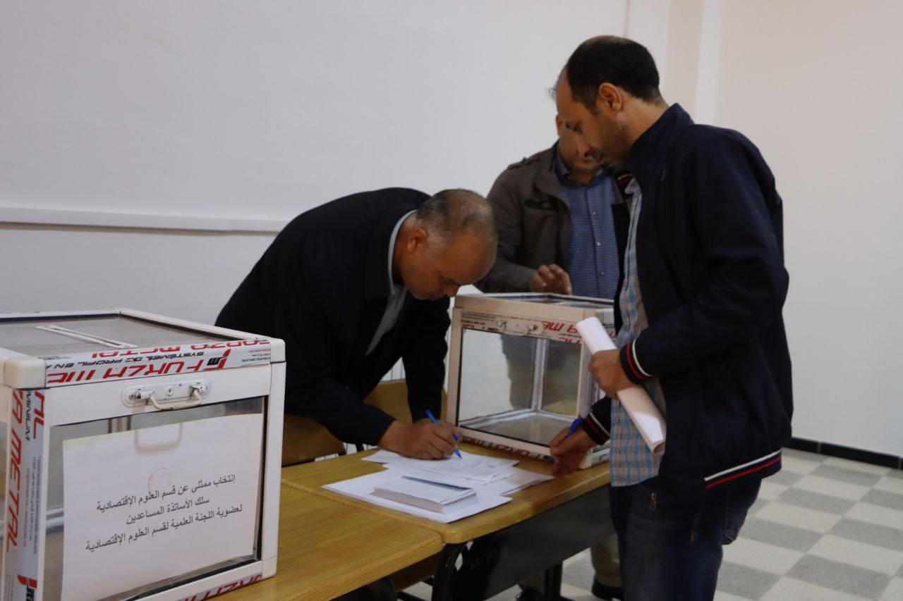 The elections for members of the Scientific Council and Scientific Committees at the Faculty of Economic, Commercial, and Management Sciences took place yesterday, October 29, 2025, under the supervision of the Dean of the Faculty. The Vice-Rector for Academic Affairs and the Dean of the Faculty of Social and Human Sciences were also present and participated in the event, which was conducted in an atmosphere of harmony and transparency.