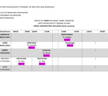 Timetable for Second-Year Medicine neuro Unit The third week Academic Year 2025–2026