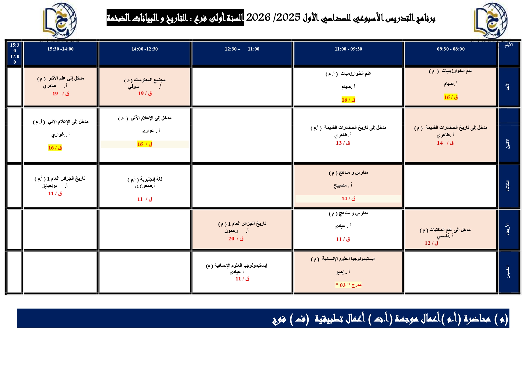 • التاليTime distribution – Department of Humanities – L2 Media and Communication